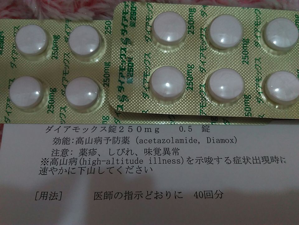 熱っぽい(たぶん熱ある)けど測れないし、高山病っぽくもないし・・と思っててふと思い出したのが、高山病の薬ダイアモックスを処方してもらった時に一緒に処方してもらった薬。